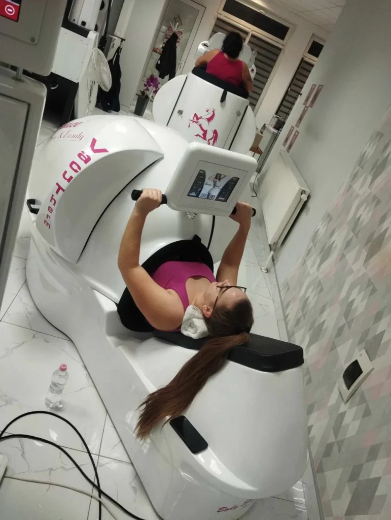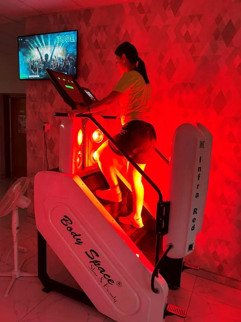 Ez a gép a fenék és comb formálásának igazi specialistája. A lépcsőző mozgás kifejezetten a kritikus alsótesti területekre hat, miközben az infra és vákuumtechnológia segíti a zsír lebontását és a bőr feszesedését. Ideális választás, ha a célod a feszesebb comb, kerekebb popsi és simább bőr. Már néhány alkalom után is érezhető a különbség.